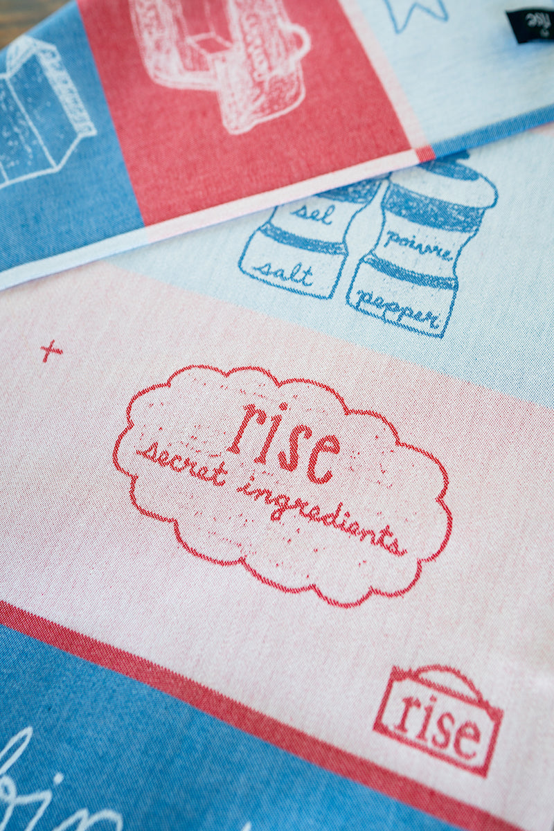 At rise, since opening in 2008, we’ve been dedicated to offering products that enhance your dining experience. After sitting at your table, one of the very first items that "gets your attention" and is placed on your lap as a napkin is our signature piece. Our exclusive rise n°1 Torchons—French for tea towels—are oversized kitchen towels crafted from 100% cotton on traditional French looms, ensuring exceptional durability. Perfect for any occasion, we use them for napkins in the restaurant, at home, and on picnics to wrap our baguettes & bottles of vin. Whether you keep them, use them, or gift them, our Torchons are a beloved favorite.