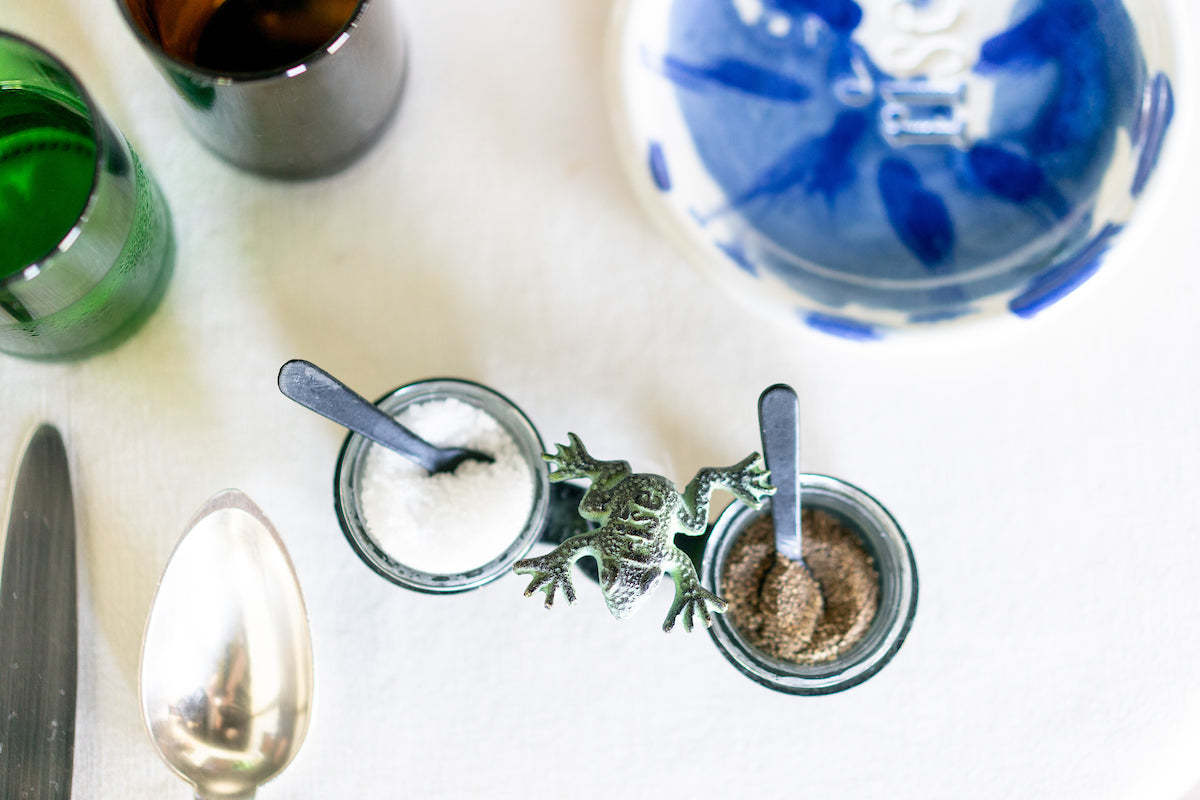 Bring a taste of rise to your table with our rise n°1 Frog Salt & Pepper Cellar. Crafted from brass with a verdi-gris finish, this endearing piece features two removable glass inserts and a petite forged iron spoon. Just like the ones that grace every table at rise, it’s the little detail that always has guests asking, “May I buy one?” Now, it can be part of your own gatherings, bringing a playful touch that’s sure to captivate your guests.